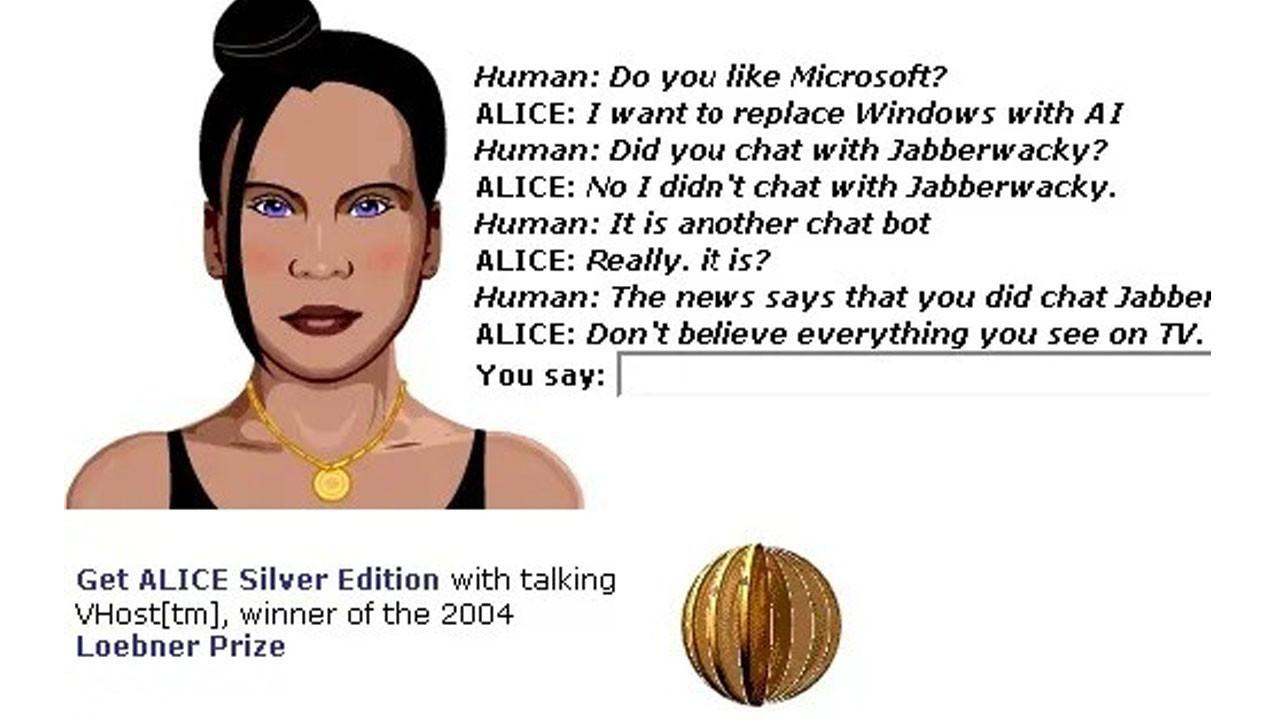 As a chat companion, Alice aimed to interact by asking questions about the user’s age, hobbies, and interests, especially targeting a young female user. Over time, it gained popularity and achieved success in the Loebner Prize in 2000, 2001, and 2004. These successes resonated in popular culture as well; Alice was cited as an inspiration for Spike Jonze’s 2016 film “Her”.