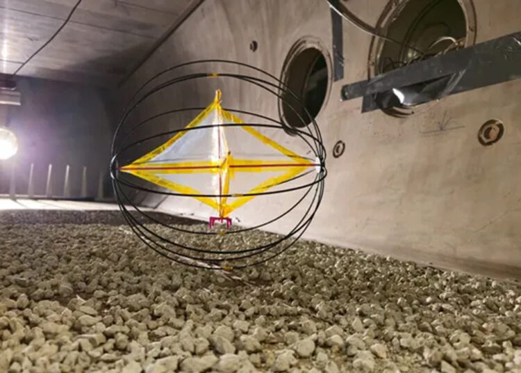 Smaller models at the Planetary Environment Facility at Aarhus University in Denmark were brought to the wind tunnel in July. Prototypes built with a wire mesh structure 30–50 centimeters in diameter were tested under low-pressure conditions similar to the Martian atmosphere. Tests on sandy, gravel, flat, and rocky surfaces showed that wind gusts blowing at speeds of 9–10 meters per second could move these vehicles. Additionally, these vehicles could also navigate sloped terrains and climb slopes of about 11.5 degrees; this corresponds to approximately 30 degrees on Earth considering Mars’ low gravity.